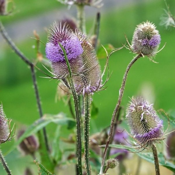 Vorig jaar liep ik met een vogelspotter op de kwekerij. Ik vertelde hem dat we nog steeds de grote kaardebol moesten planten omdat ik zo graag puttertjes in de tuin wilde. ( die eten de zaden). De kaardebol stond al klaar om geplant te worden. Hij zei: “Dat is prima Margriet maar jullie hebben al puttertjes, ik heb ze al gehoord.” Hoe leuk is dat! Ik was blij! De grote kaardebol is een inheemse plant. Een waardplant voor verschillende vlindersoorten. Het is een verfplant. Het is een nectarbron en ook nog een schuilplaats in de winter voor diverse insecten. De prachtige grote bollen bloeien roze en blijven daarna prachtig staan, ook in de winter. Zaait zich uit. Mooie, waardevolle plant voor onze gevleugelde vriendjes.