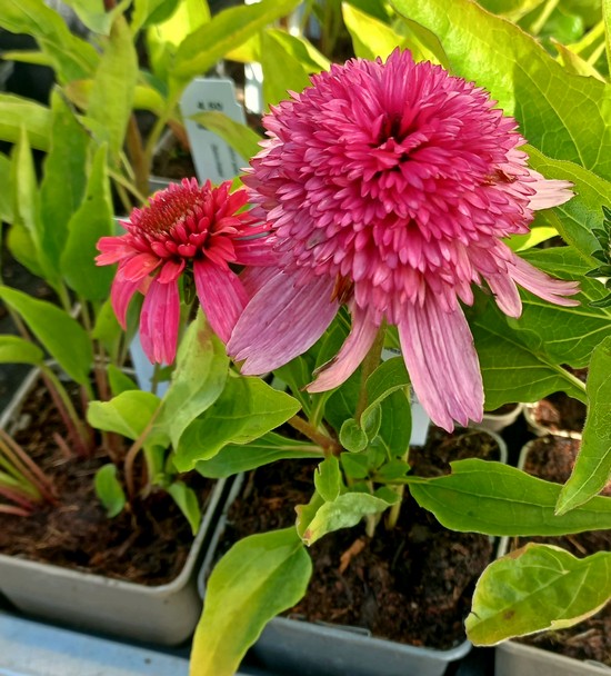 Een prachtige zonnehoed, dieproze bloemblaadjes met een mooie dieproze conus met een donkere pit erin. Een echte blikvanger. Stevige bouw. Goed winterhard. Groeit compact, wordt ongeveer 60 cm. In de zon uiteraard, de naam heeft hij niet voor niets. Bijen- en vlinderplant.