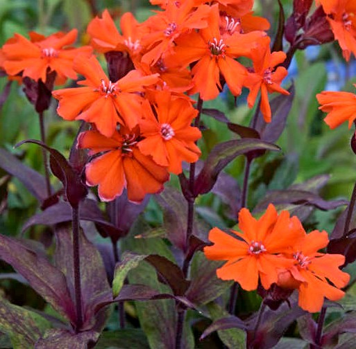 In de hoogzomer zijn felle kleuren zeer welkom! Deze Lychnis voldoet in ieder geval aan die eis, een oranjerood waar je ogen bijna zeer van gaan doen. Gelukkig tempert het donkere, bronsgroene blad een beetje. Ik hou ervan, dat weten jullie. Van mij mag het feest zijn in de tuin. En dit is echt wel een feestneus. Ook nog goed voor de vlinders en bijen. Knip de uitgebloeide bloemen af voor nog langere bloei. Deze Lychnis staat graag in de zon maar verdraagt ook wat schaduw. Neemt ook genoegen met schralere grond.