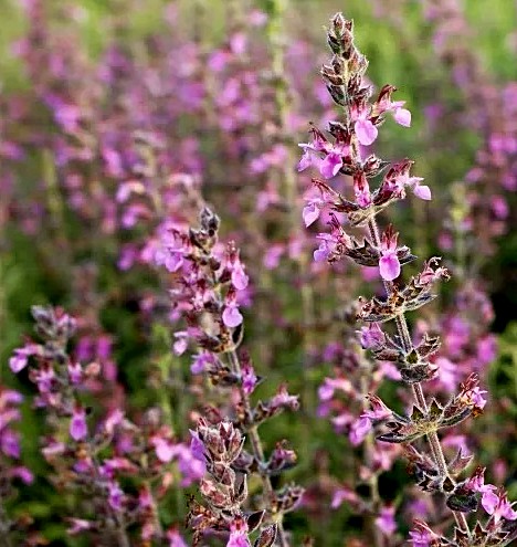 Wat bij deze Gamander meteen opvalt is de regelmatige vorm en de stevigheid van de steeltjes. Deze plant blijft wintergroen en kan zelfs als klein haagje worden toegepast. De bloei is middenroze. Lipbloemen als Salvia. Is eigenlijk een heel seizoen mooi. Is het niet door de diepe groene kleur, dan wel door de vrolijke roze bloei. Trekt veel leven.